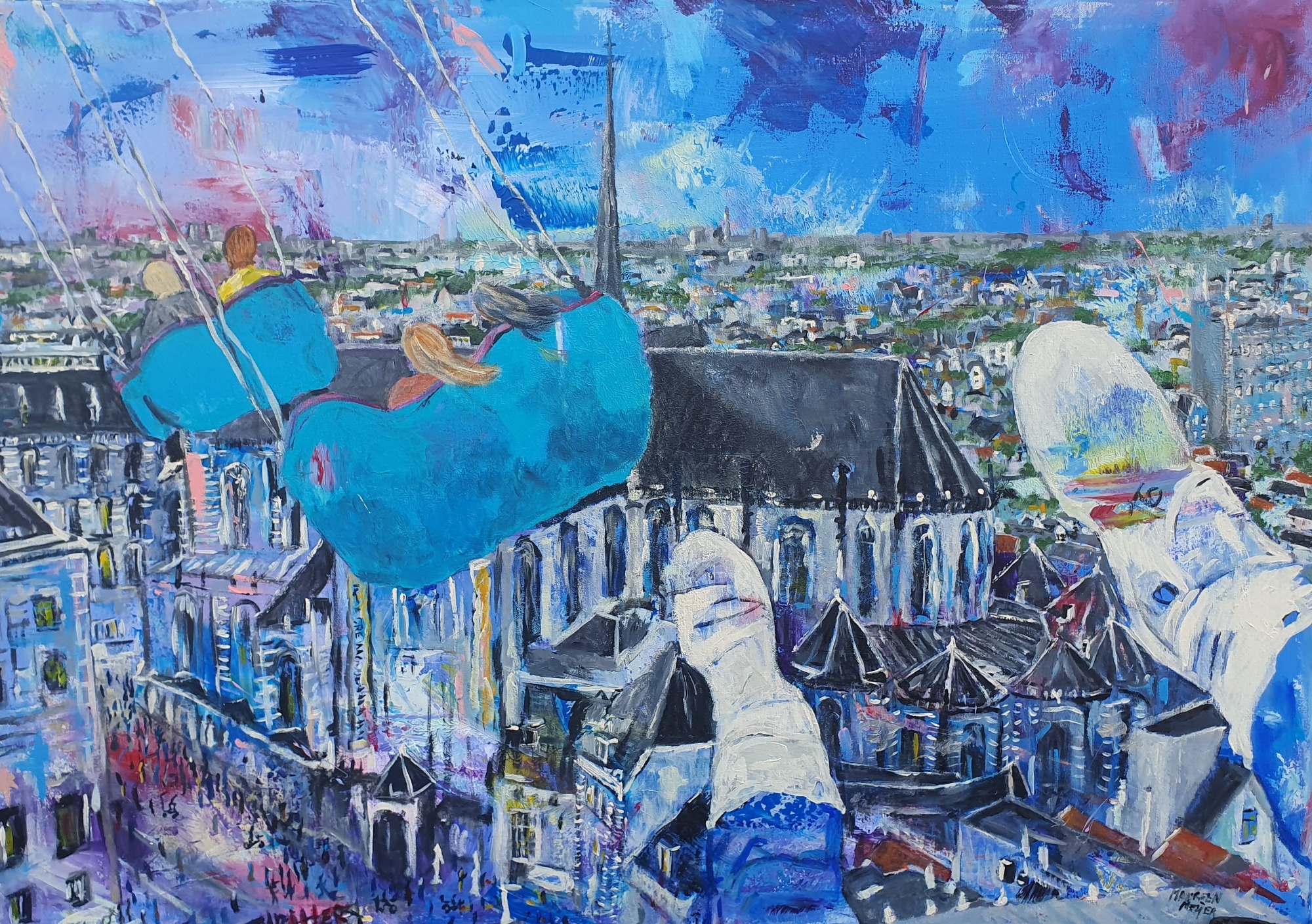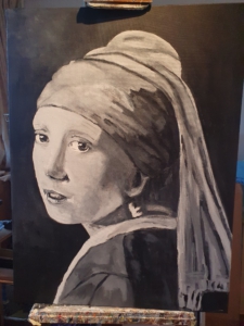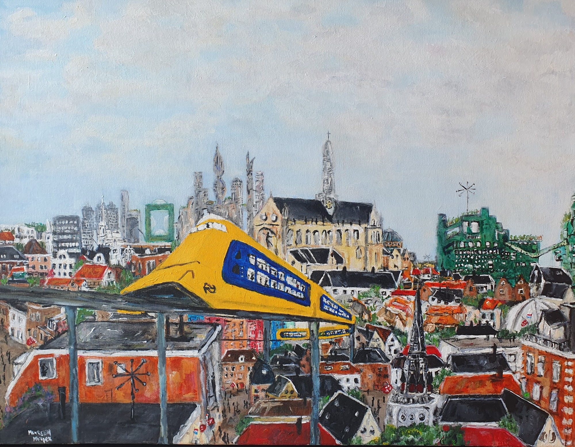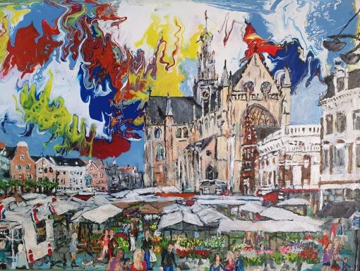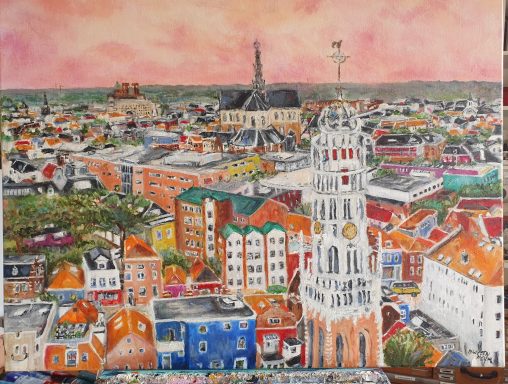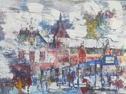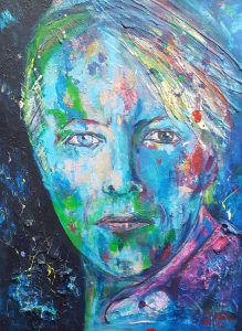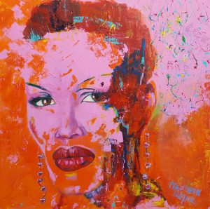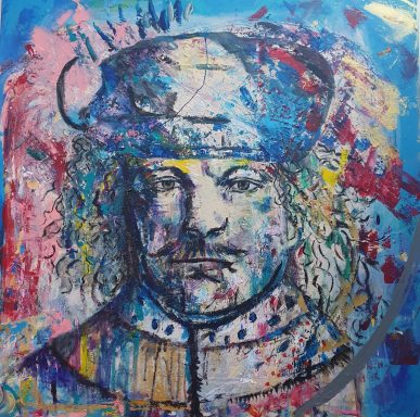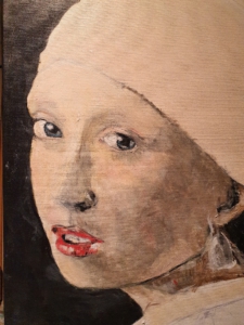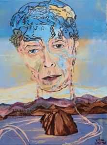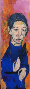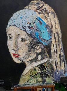 Deze portretten zijn opgebouwd uit vele lagen gescheurd papier en acrylverf. Door het werken in lagen ontstaat een rijke textuur